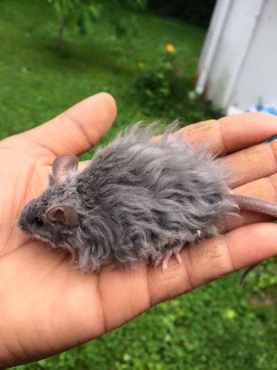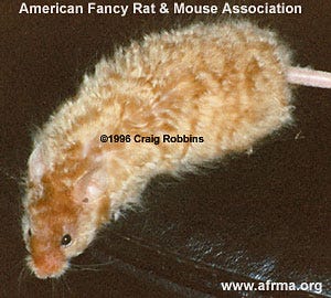 Here is a fuzzy rat, credit to Craig Robbins from AFRMA (the American Fancy Rat and Mouse Association)
