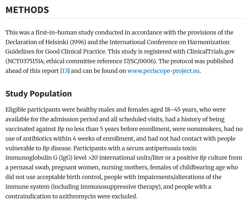 Thanks to Subscriber RogerW for pointing out something that I may have misinterpreted. For the methods section it says that the participants must have “Had a history of being vaccinated against BP no less than 5 years before enrollment”. I took that as meaning that they HAD to have been vaccinated the latest being 5 years ago. But as Roger pointed out I think it actually means the opposite, they rejected people who had been vaccinated in the last 5 years. So this really adds to the weight of these negative results. These were all essentially Unvaccinated people, in the eyes of Mainstream Immunology. A home run… and double Whoop for Joy.