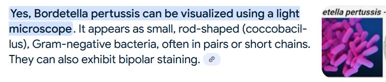 They have considered Whooping Cough to have been a bacterial caused infection since 1578 and have identified the exact bacteria in 1905… it is a little strange the first time they tried to actually prove it was in 2020. When I say “Try” to prove it, that is pretty loose terminology as they have done everything to cover their arses for failure of outcomes such as making sure that the participants were vaccinated. This is despite noting that area of high levels of vaccination were still experiencing “Whooping Cough” disease symptoms. Well I never… shocked I tell you… gobsmacked.