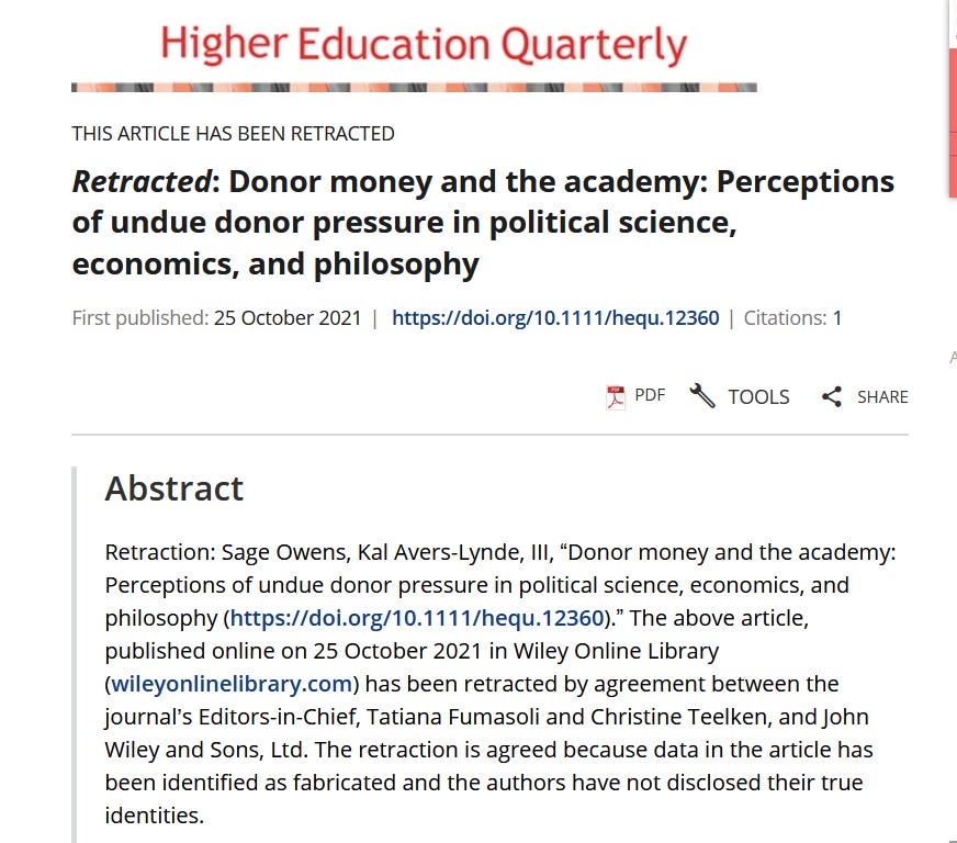 The original spoof authors who carried off some of the earliest and groundbreaking Control Studies of the Peer Review process returned to get published in the highly acclaimed journal Wiley, a spoof paper… wait for it…claiming that the Peer Review Process is corrupt. Despite the made up authors initials spelling out the word SOKAL III the supposedly ruthless Peer Review process just couldn’t handle this amount of Reverse Psychology.