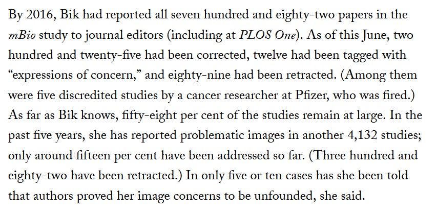 Here is an interview with Elisabeth Bik on her findings. Check it out.