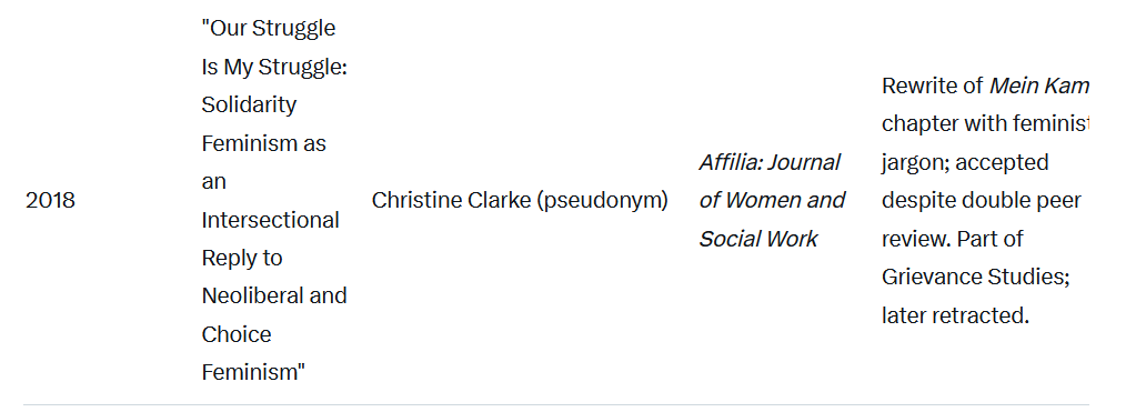 Christine Clarke submitted a Re-write of a Chapter of Adolf Hitlers Mein Kampf with dressed up feminist jargon that got through TWO stages of Peer Review to be published in a reputable journal.
