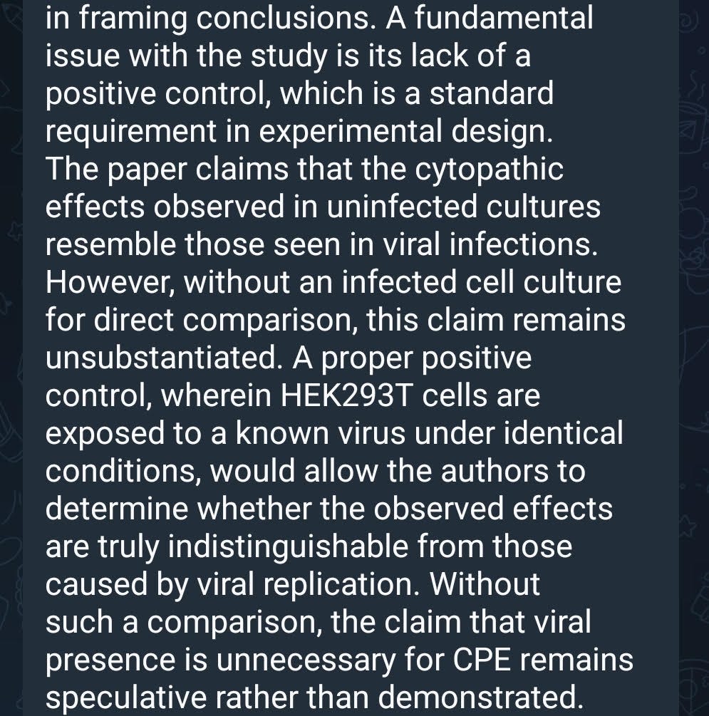 Only one out of the Eight Reviewer Priests even talked about the experiment or its result at all. Unsurprisingly they talked about a Positive Control. HUGE eye roll. The problem here to the untrained eye is that it comes across as being a somewhat legitimate point to make. However, that is very easy to explain why they are actually talking horseshit and it is a desperate last ditch attempt to clasp onto their beloved “Viruses”.