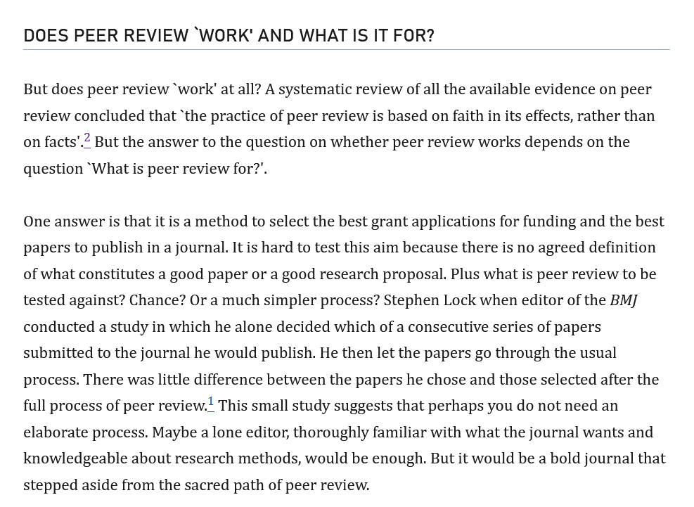 In a devastating conclusion from another paper (Effects of Editorial Peer Review) it says in no uncertain terms “ The practice of peer review is based on faith in its effects rather than of facts”