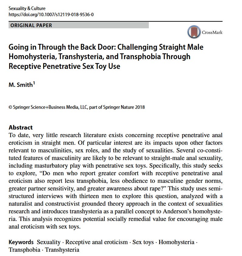 Quite literally passing through the Peer Reviewed process via the back door, this “Author” managed to get his paper published in the large and reputable journal Springer on why HeteroSexual Males should be encouraged to use Anal Dildos to reduce Transphobia.