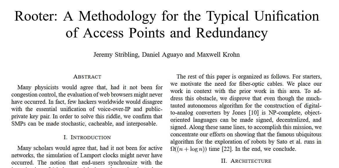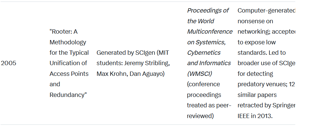 A Randomized Computer Generated paper that spat our jargon scientific words and sentences was even published in the large journal Springer.