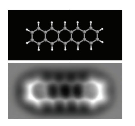As part of imagining/imaging the picture of what a molecule look like, they first have to see an image of a molecule. Seriously! They apparently couldn’t image a molecule without putting a single CO molecule on the tip of the waggle stick. So let’s have a look at how they did it:
